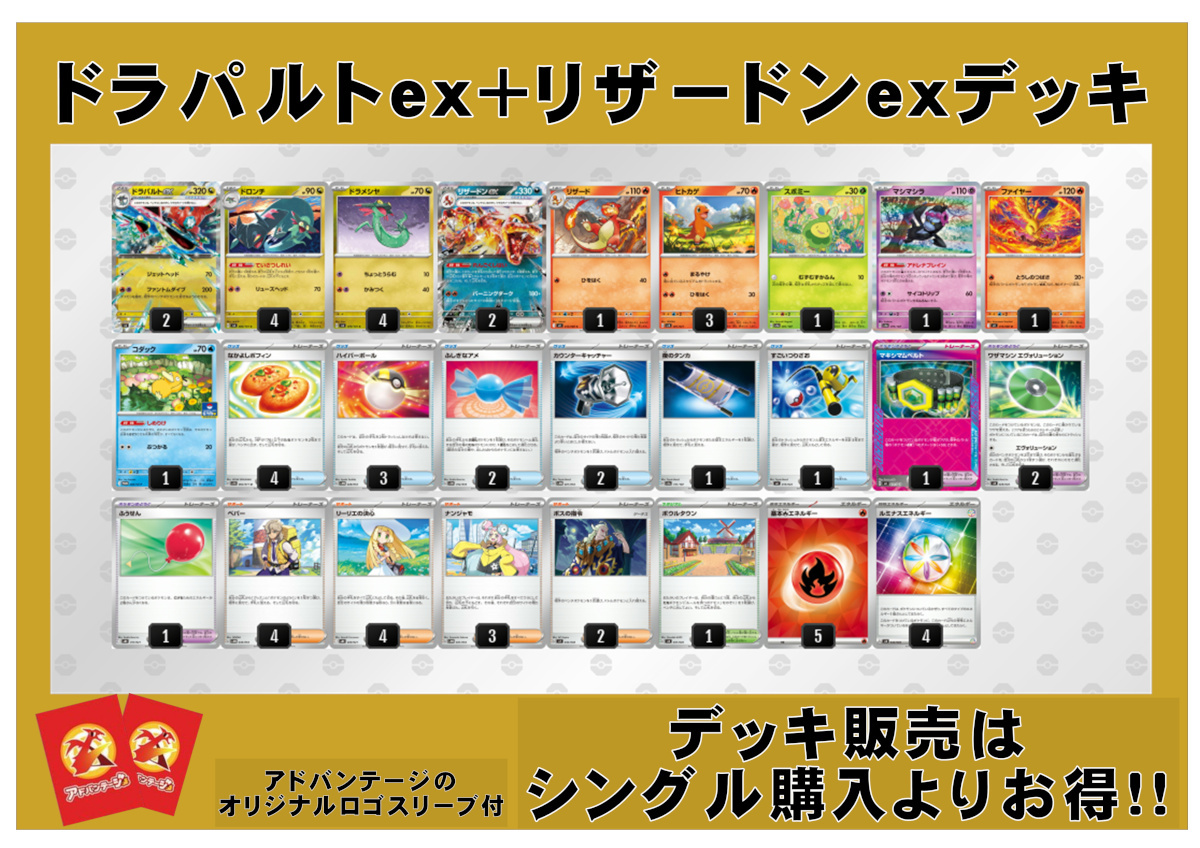 【ポケカデッキ】ドラパルトex+リザードンexデッキ(アドバンテージロゴスリーブ付き)【スタンダード】